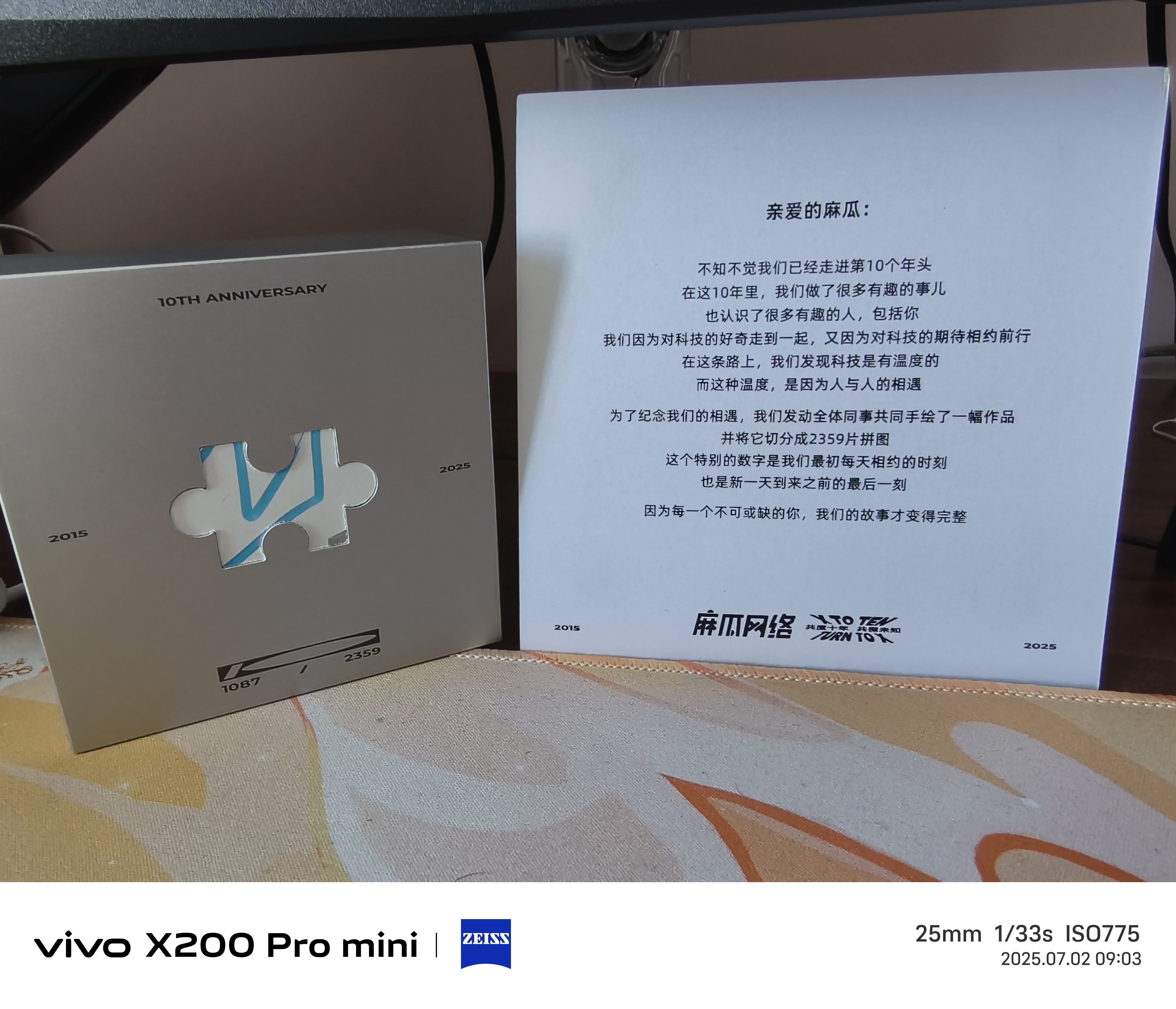 很荣幸收到了差评的十周年纪念品,成为了2359块拼图中的一个,希望下一个十年还能每日收到0点的推送和礼品(如果是真的拼图就更好了)